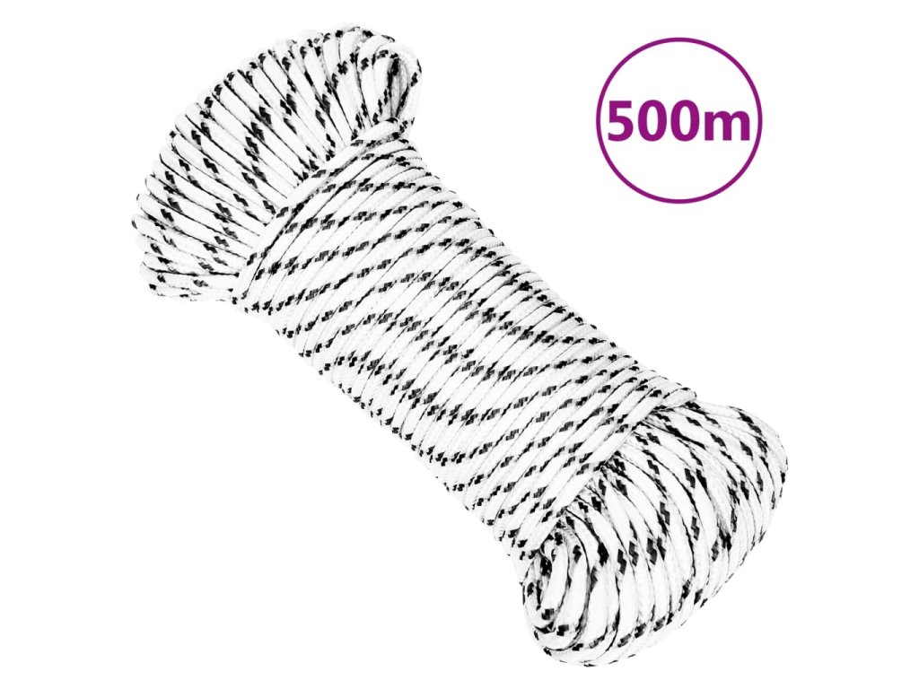 vidaXL Pletené lodné lano biele 5 mm x 500 m polyester