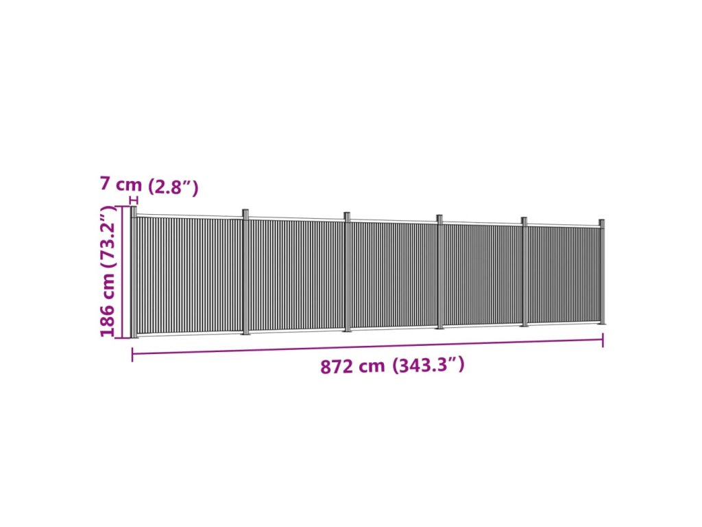 vidaXL Plotový panel sivý 872x186 cm WPC
