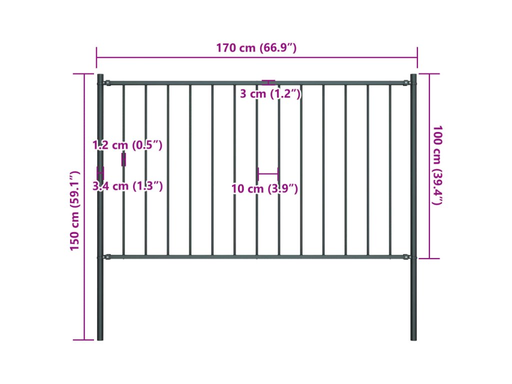 Tento plotový panel je vyrobený z pevnej ocele s práškovou povrchovou úpravou a umožní vám postaviť si robustné a trvácne oplotenie okolo záhrady. Plotový panel je odolný voči korózii a poveternostným vplyvom a postára sa o to, aby sa na váš pozemok nedostali neželaní hostia. Záhradný plot sa dodáva spolu s montážnymi materiálmi, a tak sa dá jednoducho osadiť do zeme.