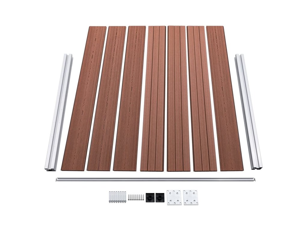 - Materiál: WPC (drevoplastový kompozit), hliník, oceľ
