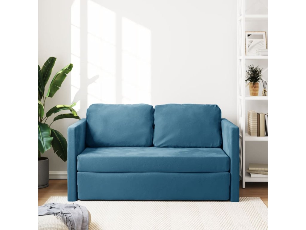 vidaXL Podlahová rozkladacia pohovka 2 v 1 modrá 122x204x55 cm zamat
