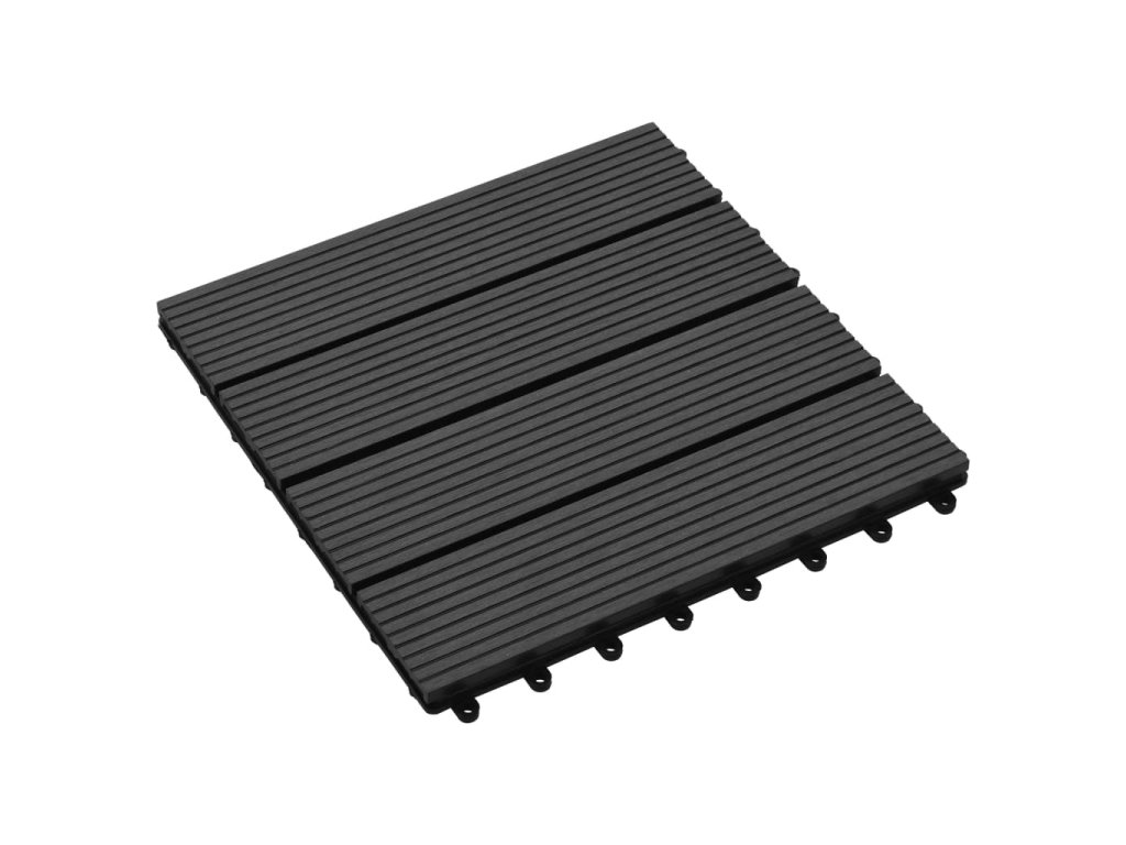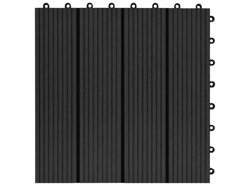 Táto sada pozostáva z 22 podlahových dosiek z WPC s rozmerom 30 x 30 cm a celkovo pokrýva plochu 2 metrov štvorcových. Je ako stvorená na terasy, balkóny, do kúpeľní alebo k bazénu či vírivke.