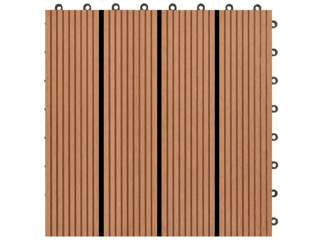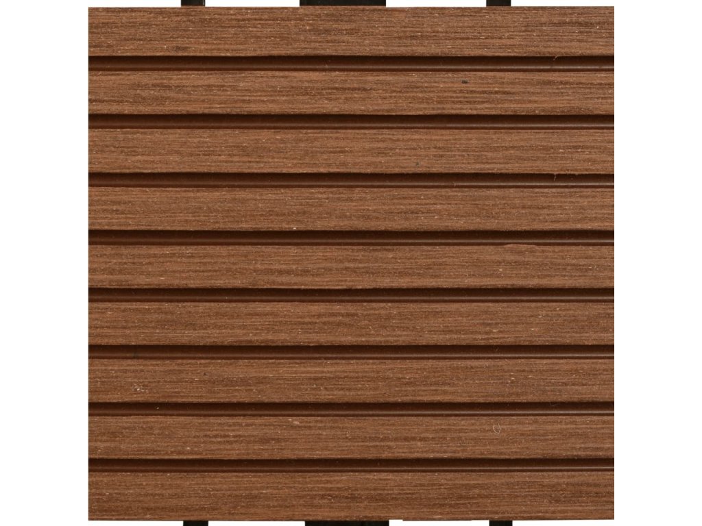 Táto sada pozostáva z 22 podlahových dosiek z drevoplastového kompozitu s rozmerom 30 x 30 cm a celkovo pokrýva plochu 2 metrov štvorcových. Je ako stvorená na terasy, balkóny, do kúpeľní alebo k bazénu či vírivke.