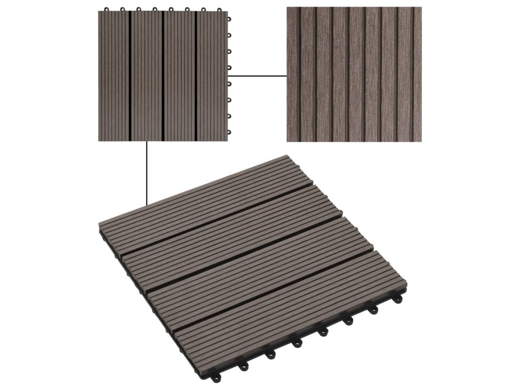 vidaXL Podlahové dlaždice 22 ks, 30x30 cm, 2 m2, WPC, tmavohnedé