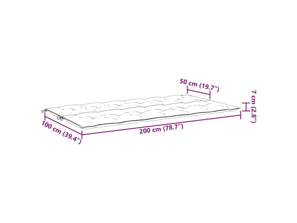 - Celkové rozmery: 200 x (50+50) x 7 cm (D x Š x H)