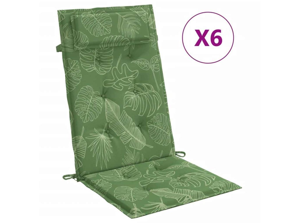vidaXL Podušky na stoličky s vysokým operadlom 6 ks vzor lístia látka