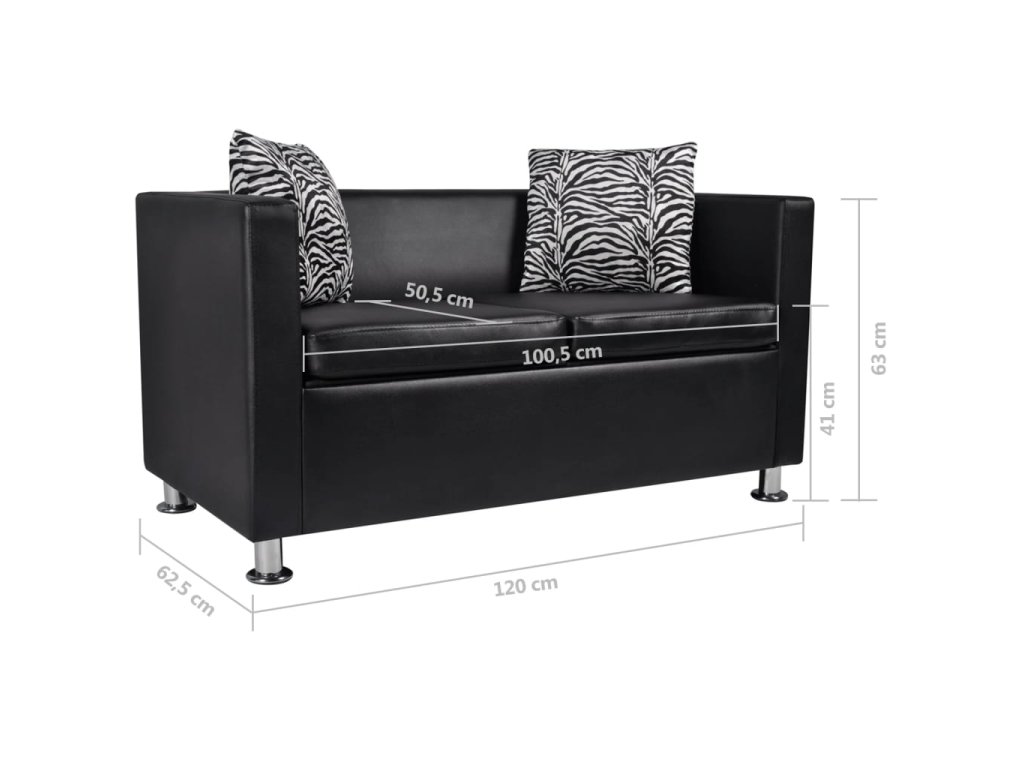 vidaXL Pohovka, 2-miestna, umelá koža, čierna