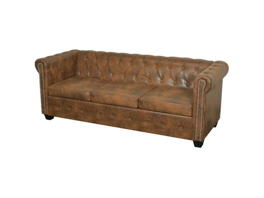 vidaXL Pohovka Chesterfield, 3-miestna, umelá koža, hnedá