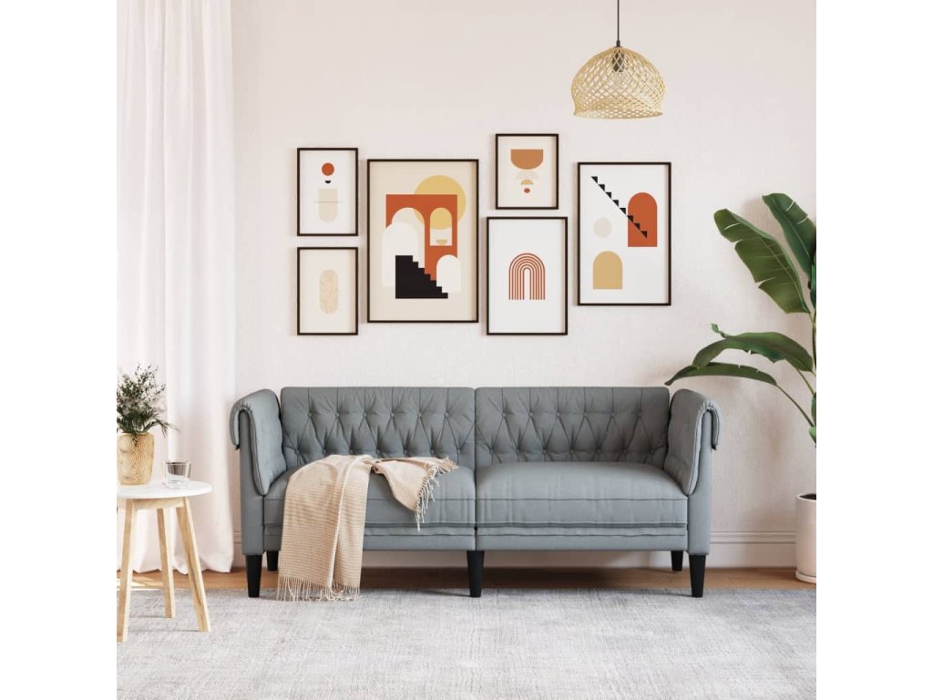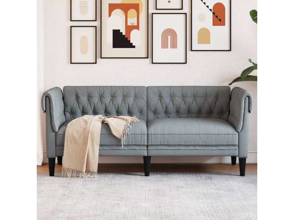 vidaXL Pohovka Chesterfield 2-miestna bledosivá látka
