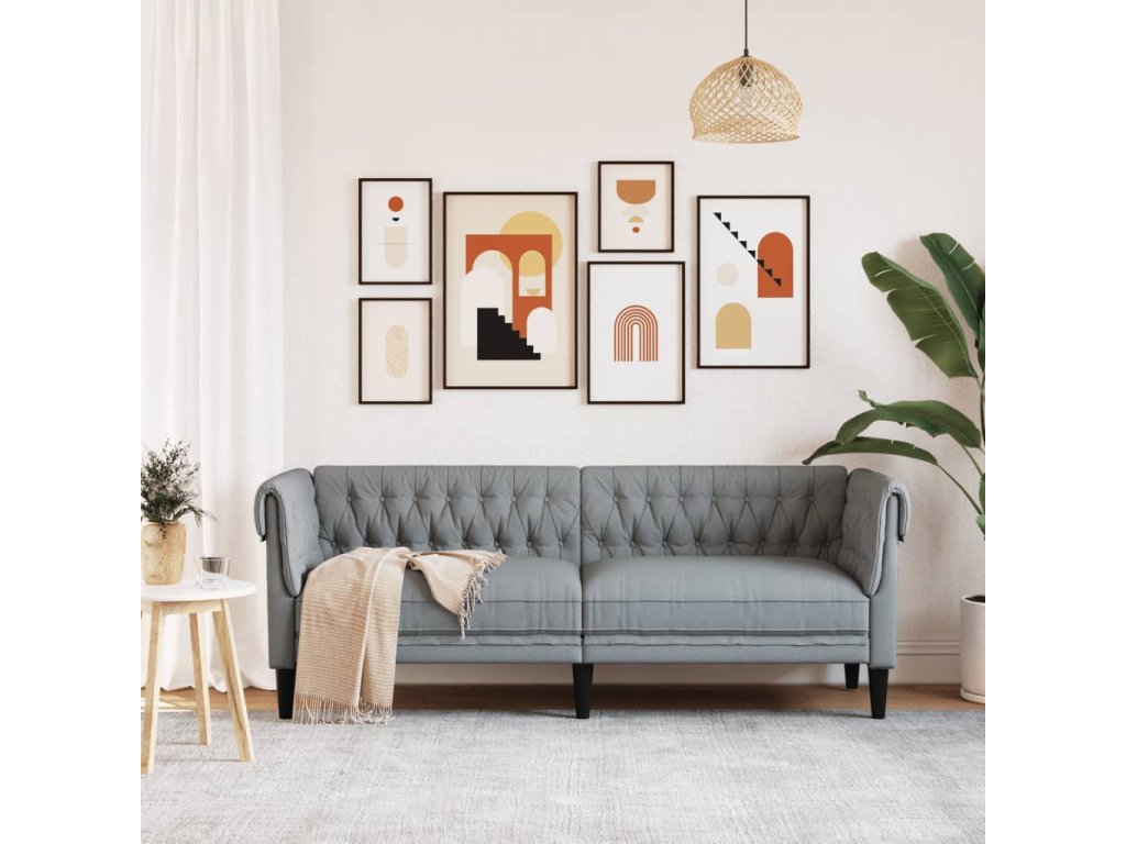 vidaXL Pohovka Chesterfield 3-miestna svetlosivá látka