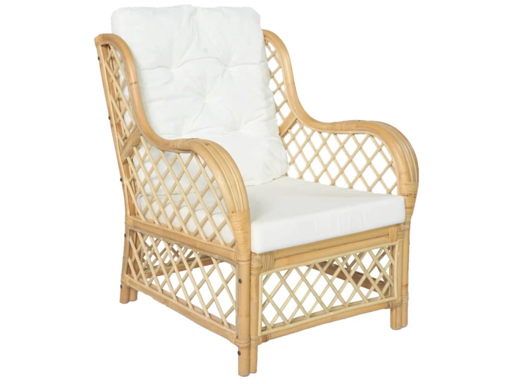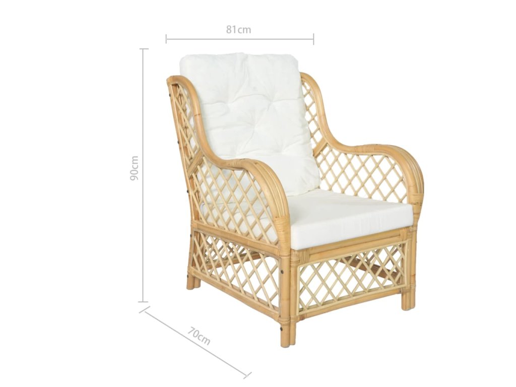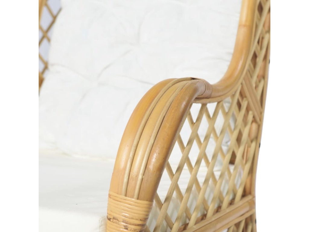 Táto stolička je vyrobená z prírodného ratanu, vďaka čomu je odolná a ľahko sa čistí. Pribalené podložky poskytujú maximálne pohodlie a pomáhajú uvoľniť telo po náročnom dni. Je ideálna pre rodinné filmové večery, hranie videohier, čítanie alebo sledovanie televízie.