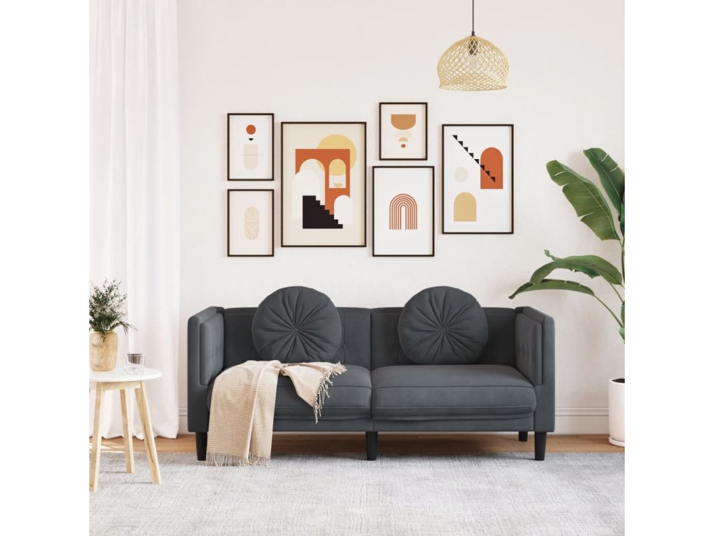 vidaXL Pohovka s vankúšmi 2-miestna tmavosivá zamat
