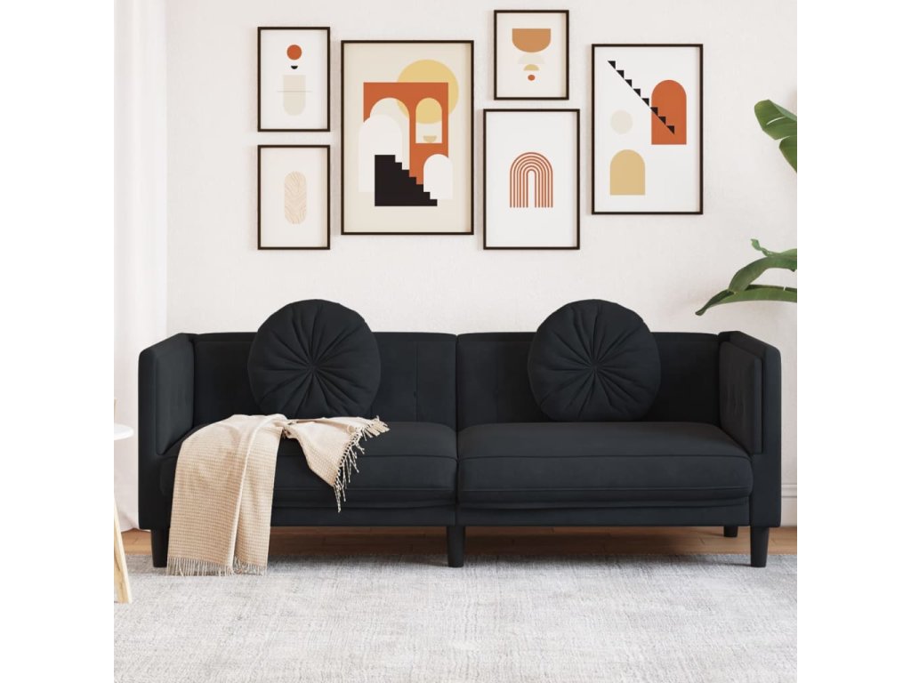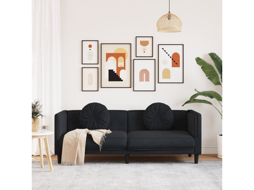 vidaXL Pohovka s vankúšmi 3-miestna čierna zamat