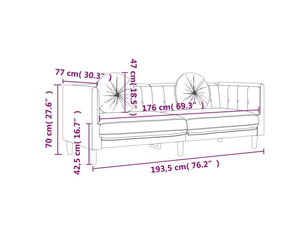 - Pohodlné sedenie: Pohovka je veľmi pohodlná vďaka husto čalúnenému sedadlu, podrúčkam, operadlu a okrúhlym vankúšom