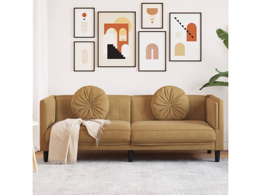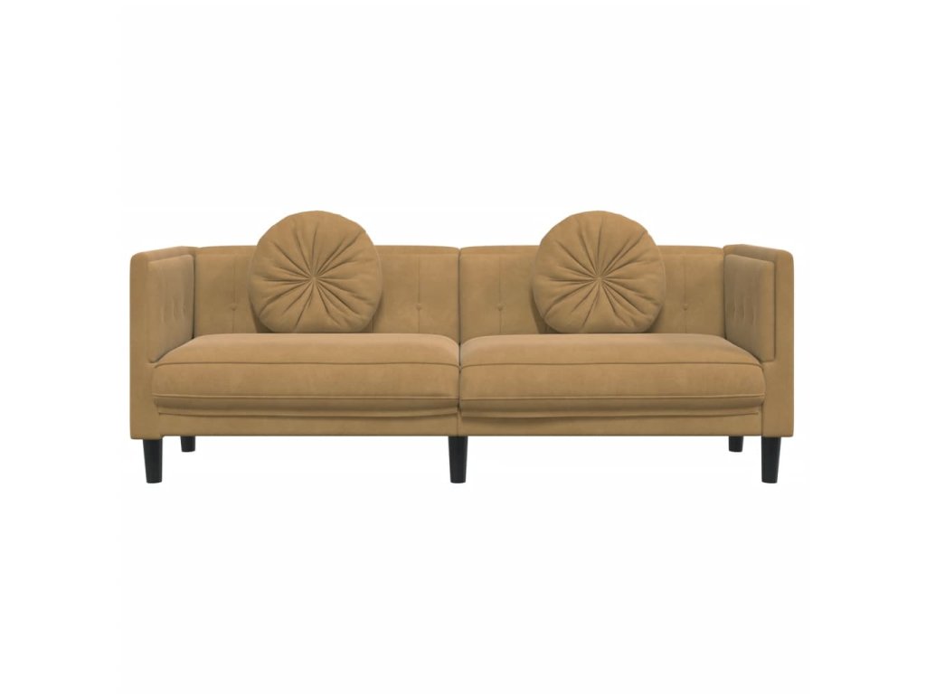 vidaXL Pohovka s vankúšmi 3-miestna hnedá umelá semišová koža