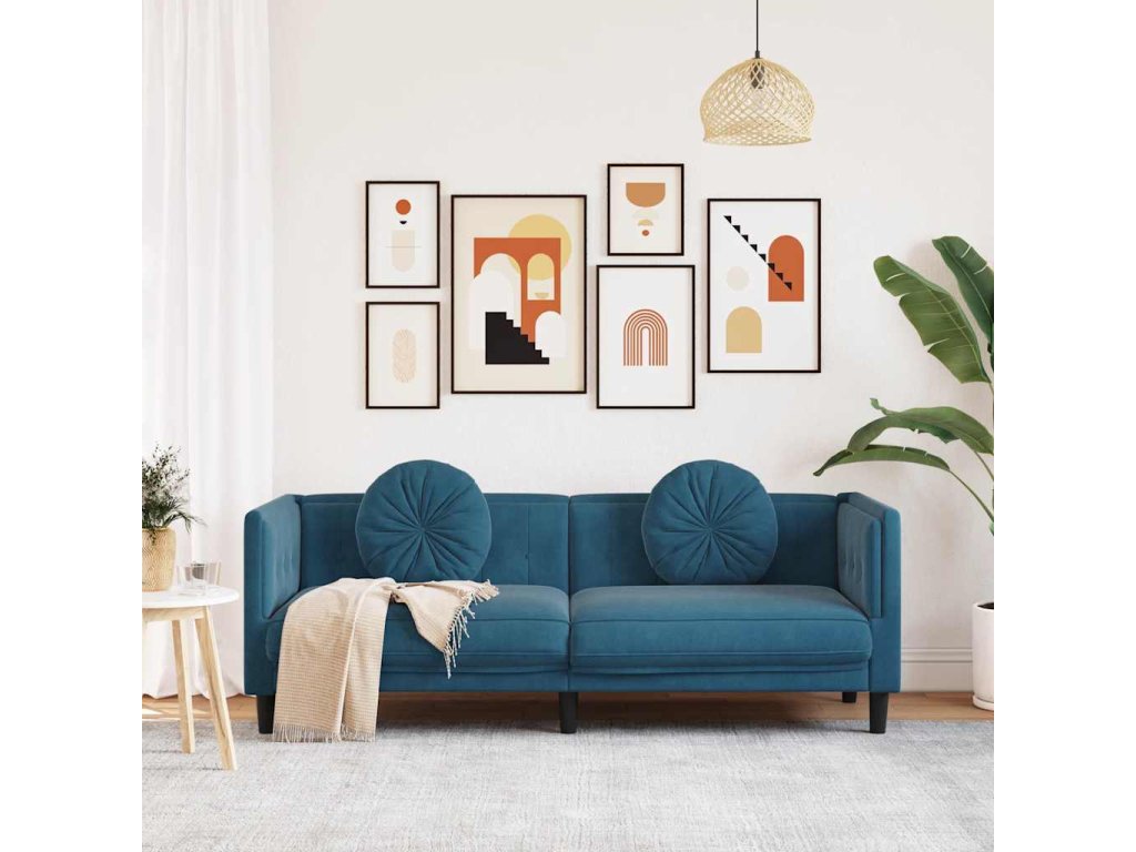 vidaXL Pohovka s vankúšmi 3-miestna modrá zamat