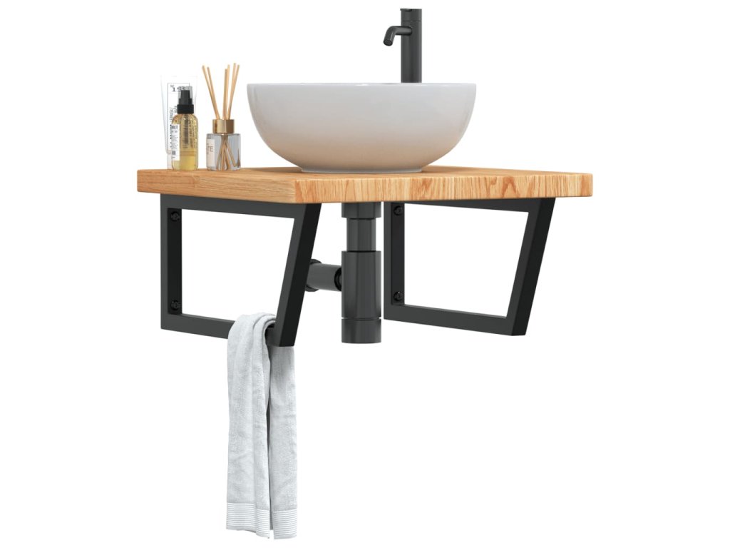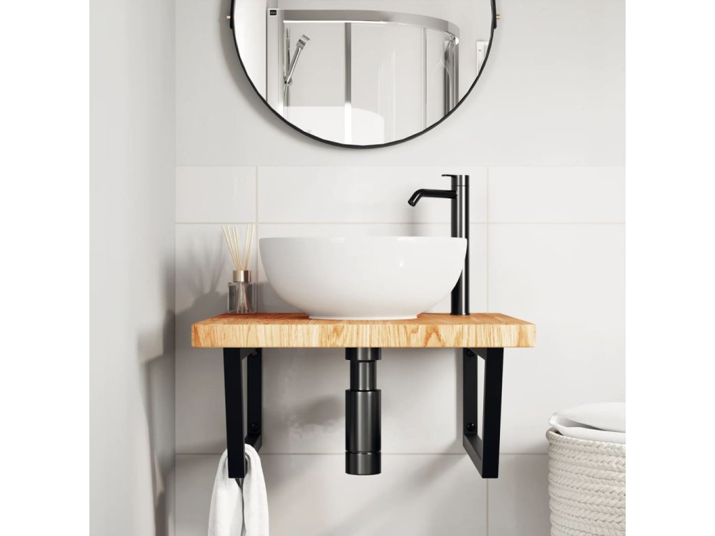 - Robustná a trvácna: Polica pod umývadlo pozostáva z oceľovej konštrukcie a dosky z dubového masívu, vďaka čomu je robustná, stabilná a trvácna.