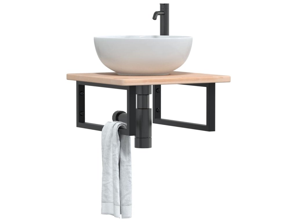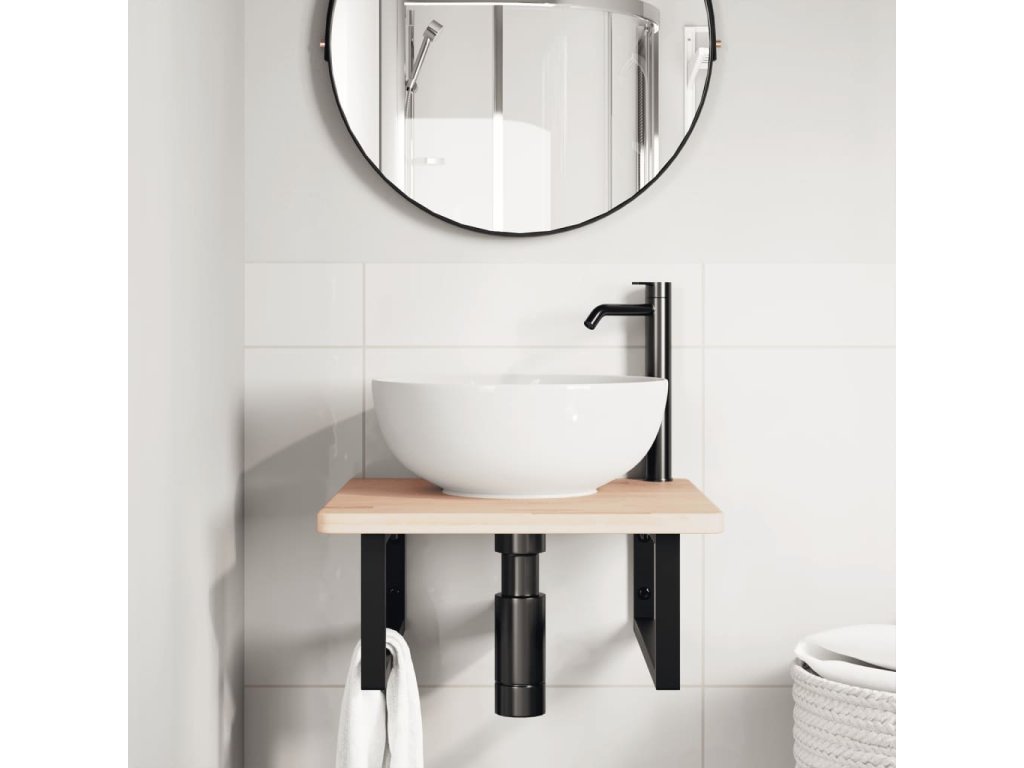 - Robustná a trvácna: Polica pod umývadlo pozostáva z oceľovej konštrukcie a dosky z dubového masívu, vďaka čomu je robustná, stabilná a trvácna.