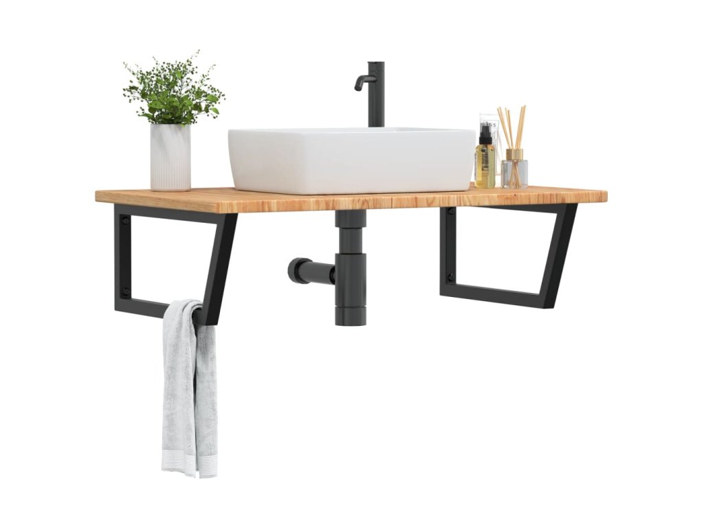 - Robustná a trvácna: Polica pod umývadlo pozostáva z oceľovej konštrukcie a dosky z dubového masívu, vďaka čomu je robustná, stabilná a trvácna.