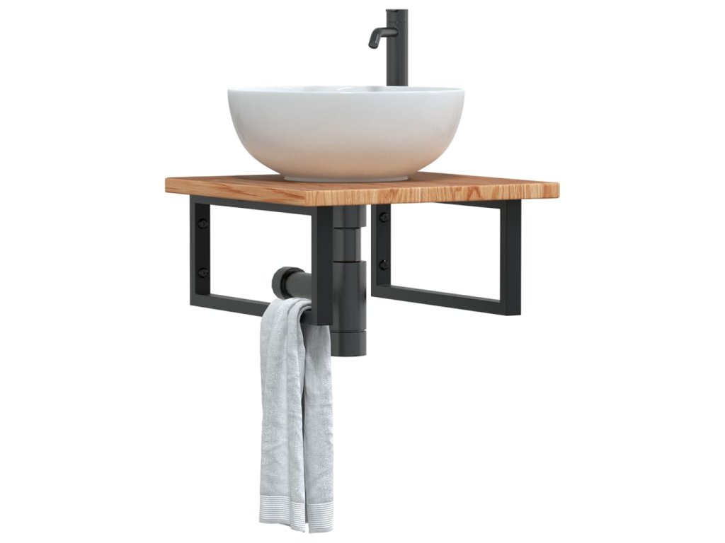 - Robustná a trvácna: Polica pod umývadlo pozostáva z oceľovej konštrukcie a dosky z dubového masívu, vďaka čomu je robustná, stabilná a trvácna.