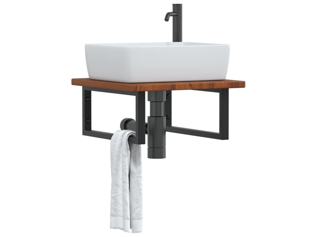 vidaXL Polica pod umývadlo, nástenná, oceľ a dubový masív