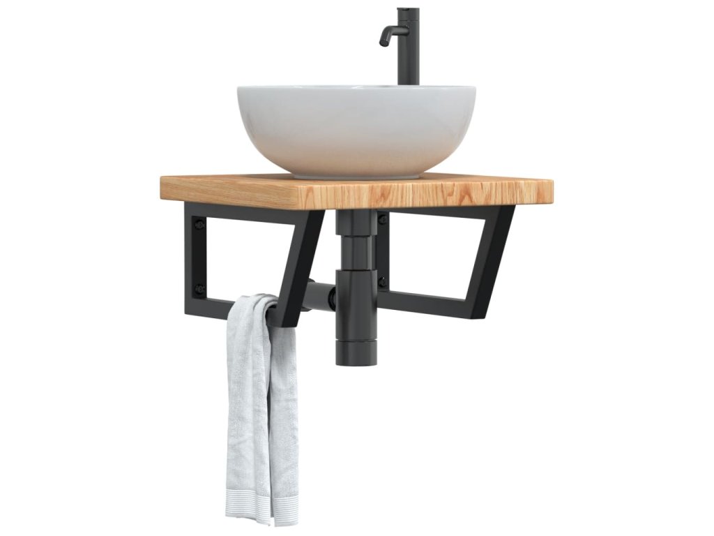 vidaXL Polica pod umývadlo, nástenná, oceľ a dubový masív