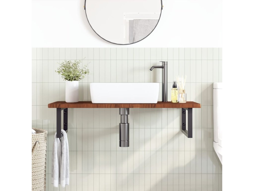- Robustná a trvácna: Polica pod umývadlo pozostáva z oceľovej konštrukcie a dosky z dubového masívu, vďaka čomu je robustná, stabilná a trvácna.
