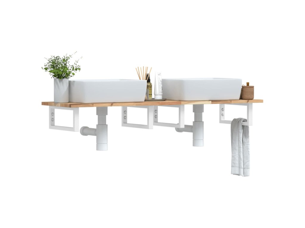 - Robustná a trvácna: Polica pod umývadlo pozostáva z oceľovej konštrukcie a dosky z akáciového masívu, vďaka čomu je robustná, stabilná a trvácna.