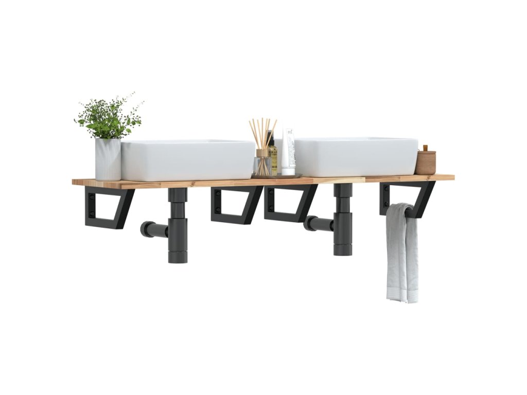 - Robustná a trvácna: Polica pod umývadlo pozostáva z oceľovej konštrukcie a dosky z akáciového masívu, vďaka čomu je robustná, stabilná a trvácna.