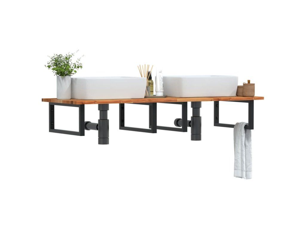 - Robustná a trvácna: Polica pod umývadlo pozostáva z oceľovej konštrukcie a dosky z akáciového masívu, vďaka čomu je robustná, stabilná a trvácna.