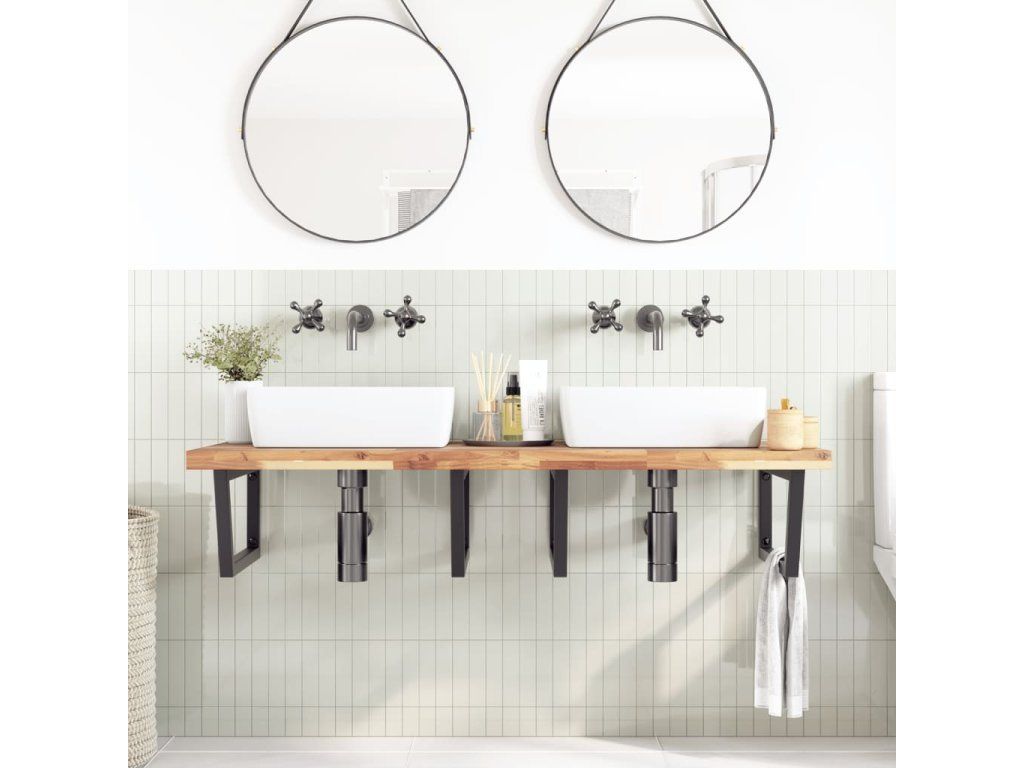 - Robustná a trvácna: Polica pod umývadlo pozostáva z oceľovej konštrukcie a dosky z akáciového masívu, vďaka čomu je robustná, stabilná a trvácna.