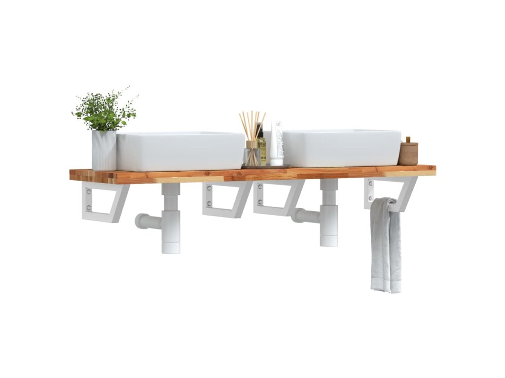 - Robustná a trvácna: Polica pod umývadlo pozostáva z oceľovej konštrukcie a dosky z akáciového masívu, vďaka čomu je robustná, stabilná a trvácna.