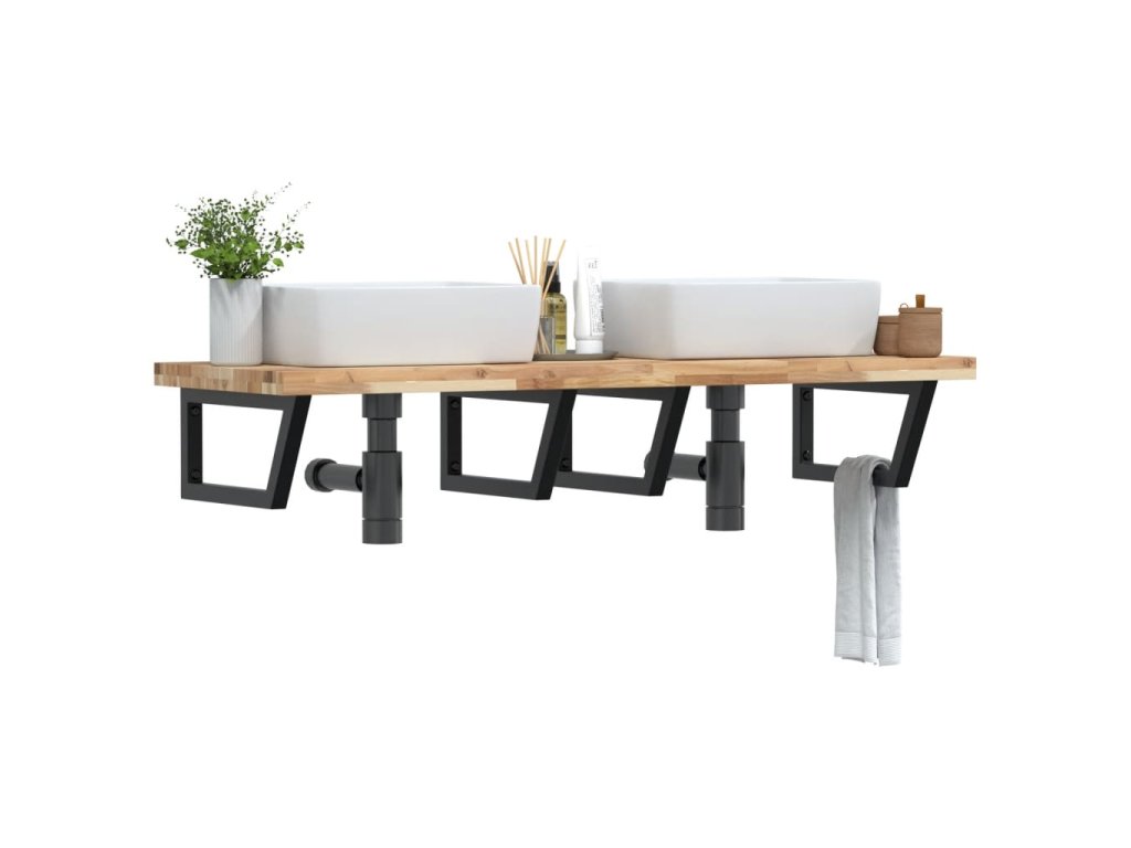 - Robustná a trvácna: Polica pod umývadlo pozostáva z oceľovej konštrukcie a dosky z akáciového masívu, vďaka čomu je robustná, stabilná a trvácna.