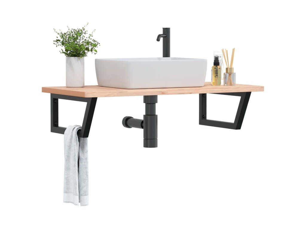 - Robustná a trvácna: Polica pod umývadlo pozostáva z oceľovej konštrukcie a dosky z bukového masívu, vďaka čomu je robustná, stabilná a trvácna.