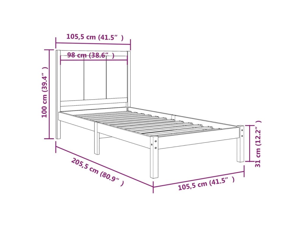- Rozmery rámu postele: 205,5 x 105,5 x 31 cm (D x Š x V)