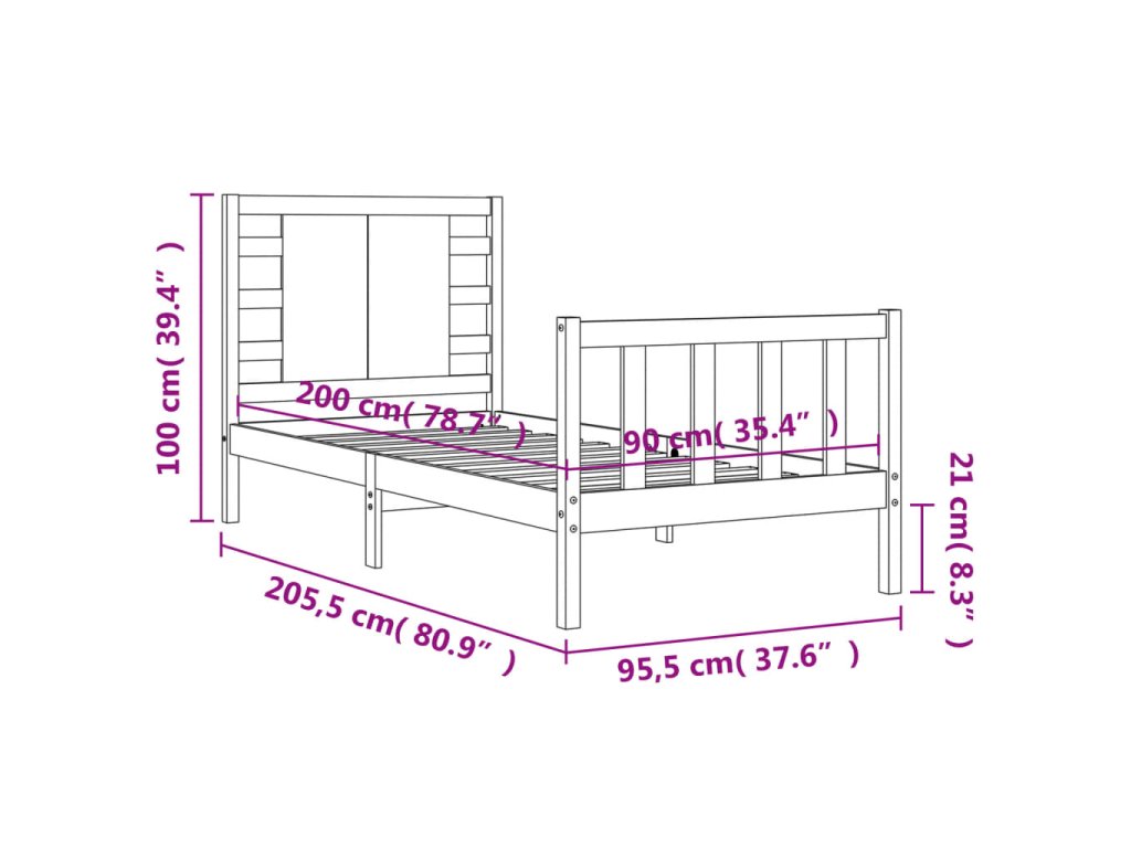 vidaXL Posteľ bez matraca 90x200 cm masívna borovica