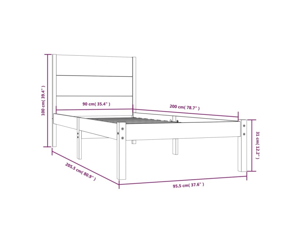 - Tento rám postele je vhodný pre matrac s rozmermi 90 x 200 cm.