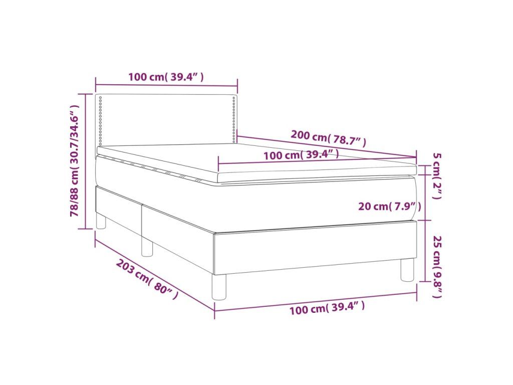 vidaXL Posteľ boxsping s matracom a LED bledosivá 100x200 cm látka