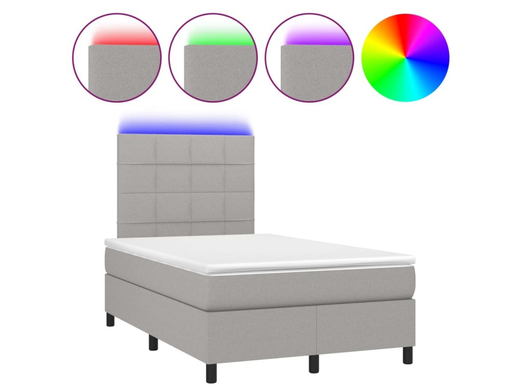 vidaXL Posteľ boxsping s matracom a LED bledosivá 120x200 cm látka