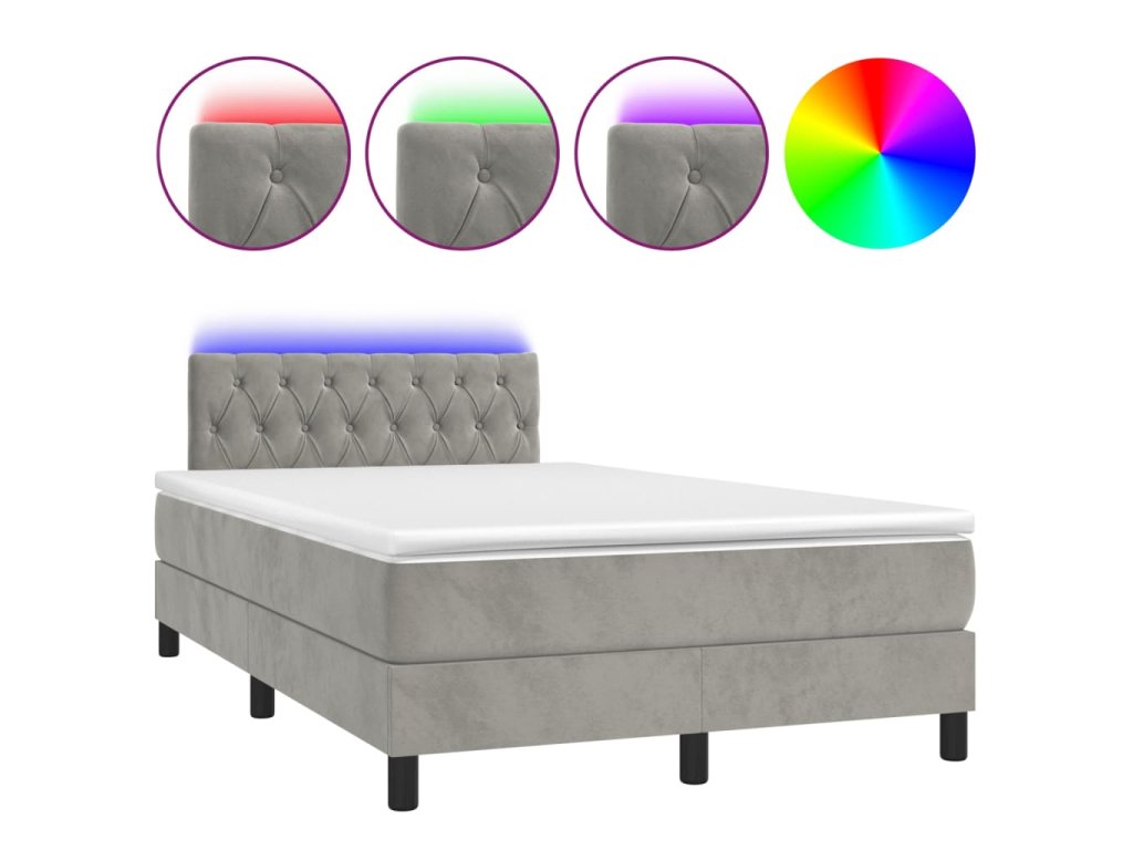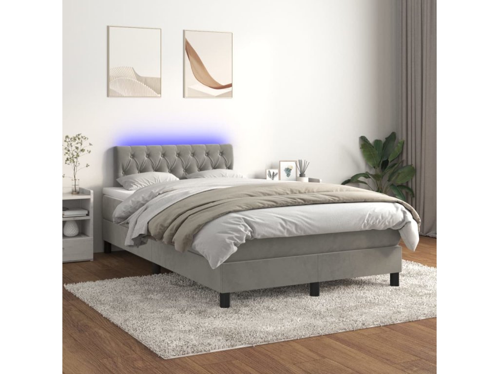vidaXL Posteľ boxsping s matracom a LED bledosivá 120x200 cm zamat