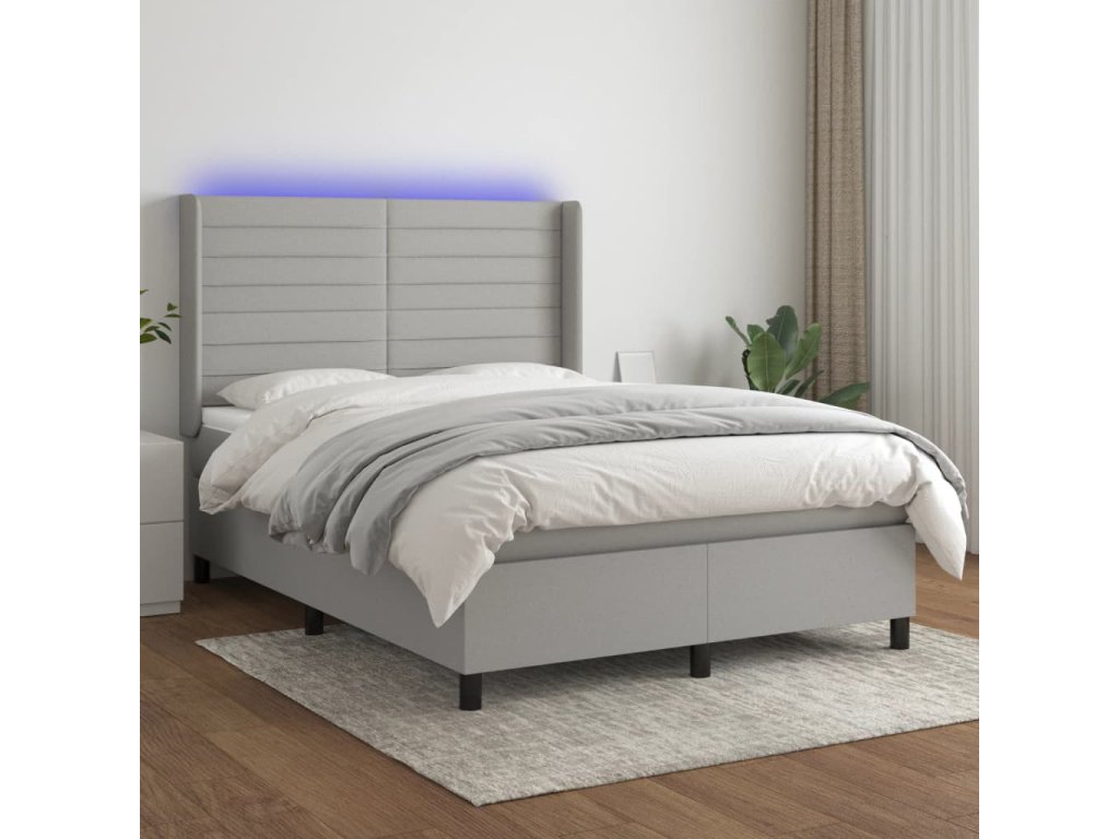 vidaXL Posteľ boxsping s matracom a LED bledosivá 140x190 cm látka