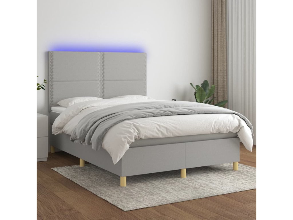 vidaXL Posteľ boxsping s matracom a LED bledosivá 140x190 cm látka