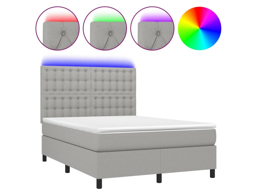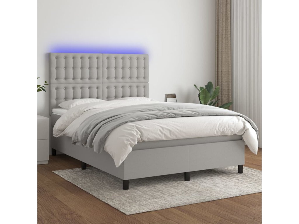 vidaXL Posteľ boxsping s matracom a LED bledosivá 140x190 cm látka