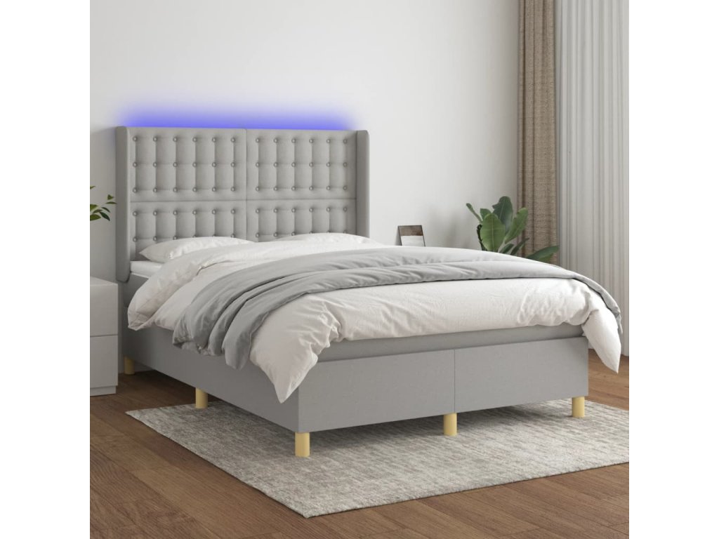 vidaXL Posteľ boxsping s matracom a LED bledosivá 140x190 cm látka