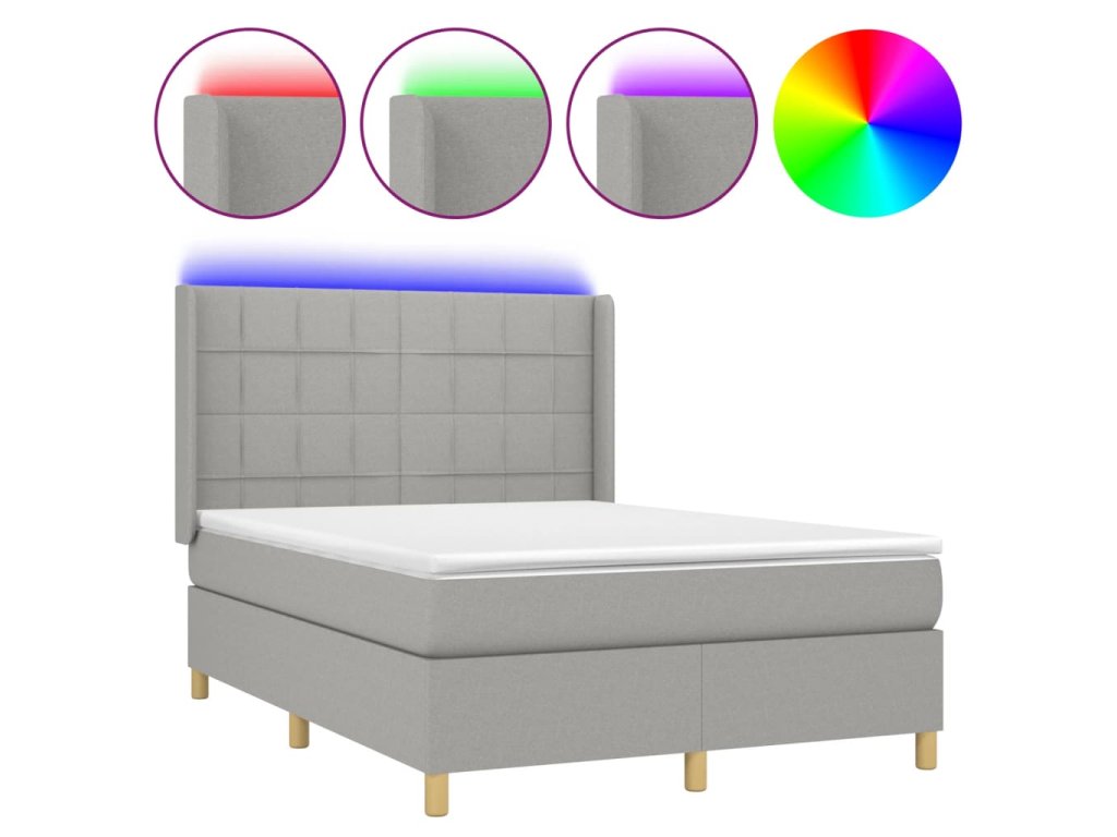vidaXL Posteľ boxsping s matracom a LED bledosivá 140x190 cm látka
