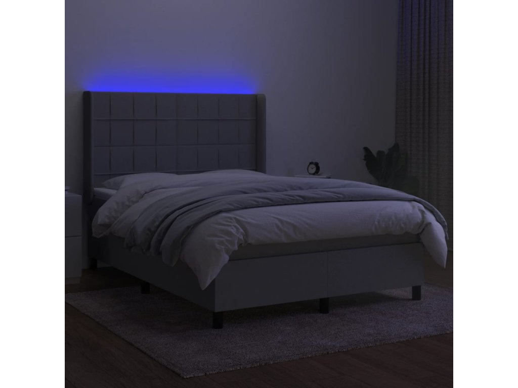 vidaXL Posteľ boxsping s matracom a LED bledosivá 140x190 cm látka