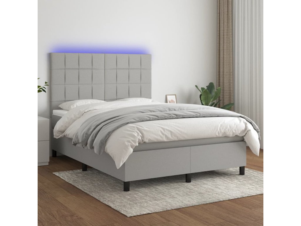 vidaXL Posteľ boxsping s matracom a LED bledosivá 140x190 cm látka