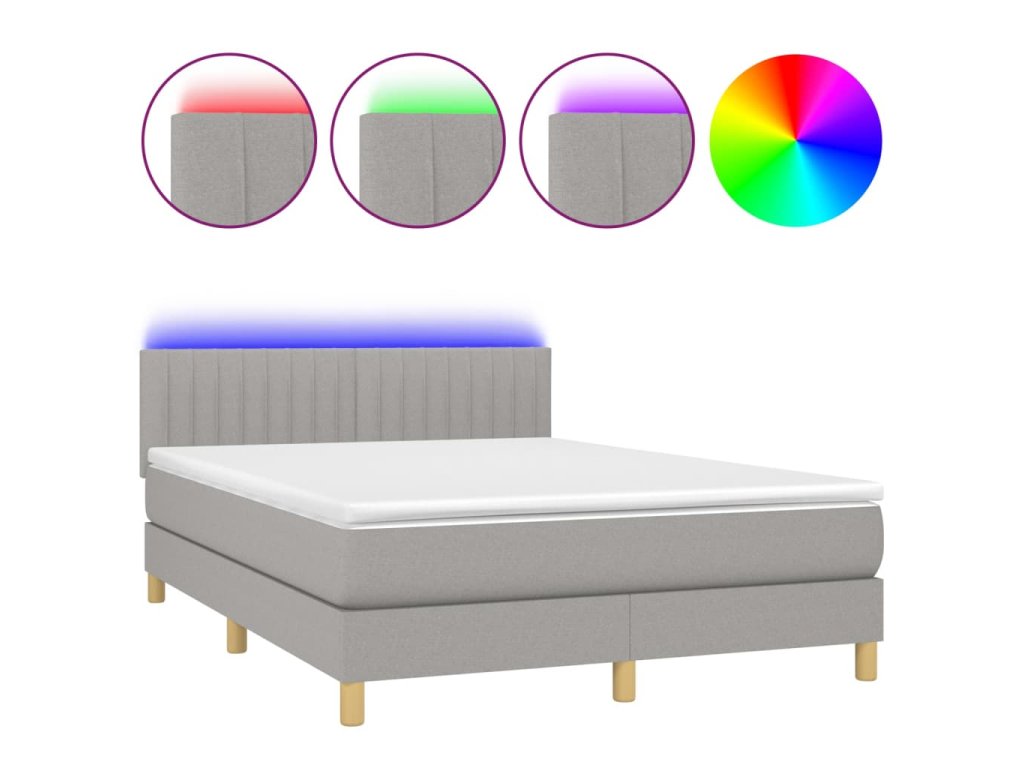 vidaXL Posteľ boxsping s matracom a LED bledosivá 140x190 cm látka
