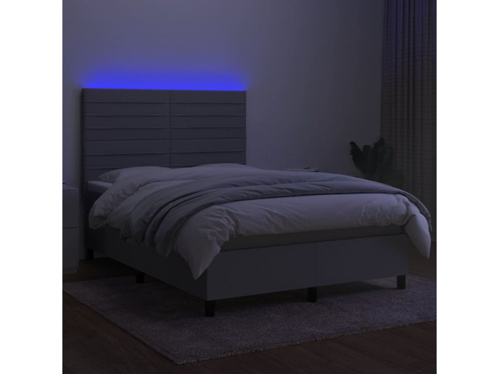 vidaXL Posteľ boxsping s matracom a LED bledosivá 140x190 cm látka