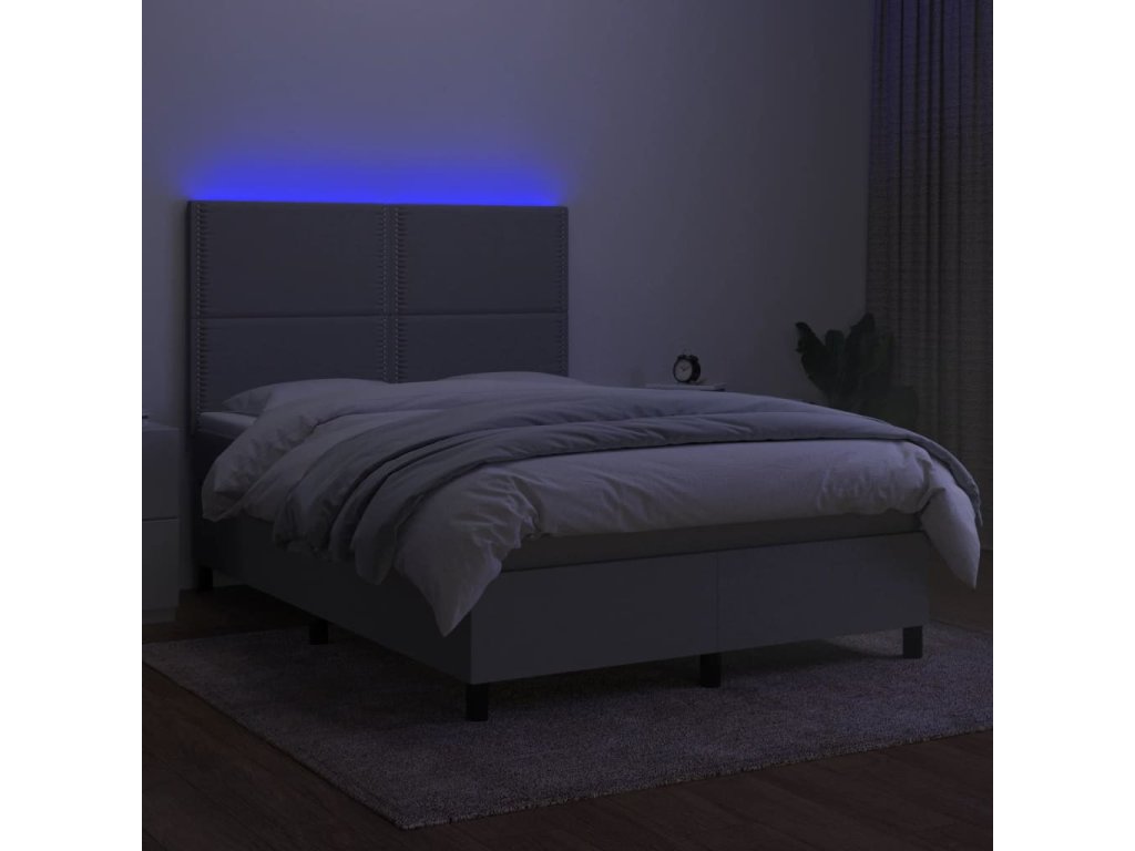vidaXL Posteľ boxsping s matracom a LED bledosivá 140x190 cm látka